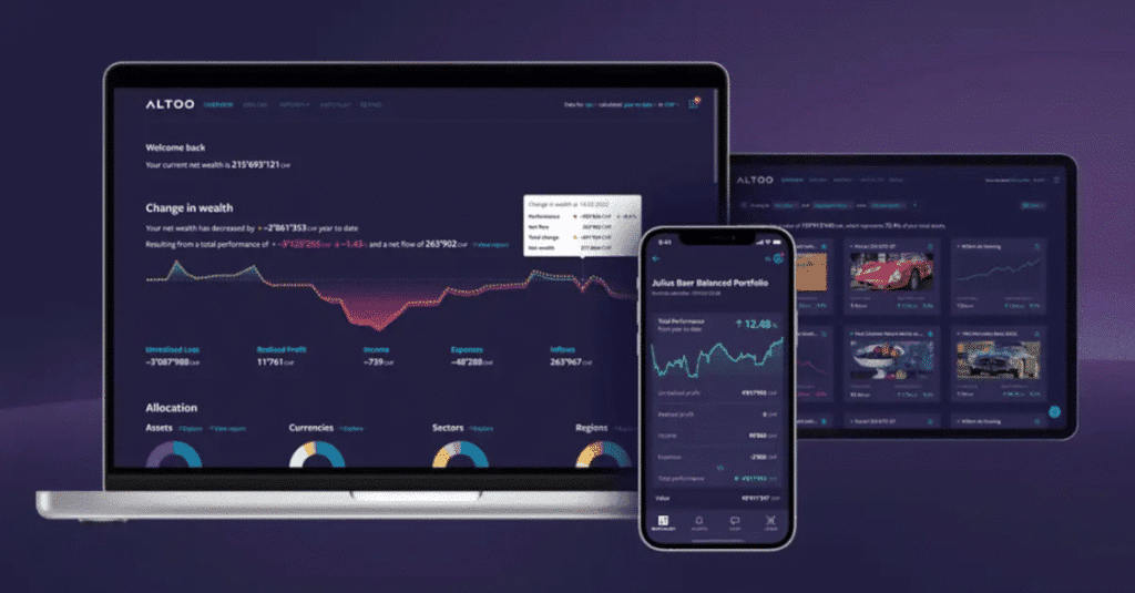 Altoo exemplifies this approach. Hosted in Switzerland, it consolidates multi-bank, multi-asset data into one secure dashboard covering public equities, private equity vintages, and real estate. Permissioned access allows, for example, heirs to view reports without overriding allocations. Granular audit trails and encryption anchor confidentiality.